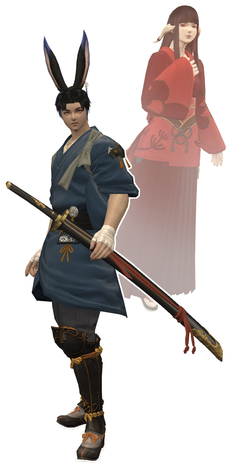 A mysterious mixed Rava-Hyur, Zetoichi is even a mystery to himself. He has a form of amnesia that has affected the way he perceives himself and the world. The only life he remembers is that in Hingashi. He could not tell you much about himself because of this. However, this does not stop him from using his strange abilities for good. A ghost hunter with a cursed jobstone, Z travels across the globe in search of stories and tales of odd spirits and malicious energies. Some consider him a sort of Onmyoji.If you are spiritually or aetherically inclined, you might see the ghostly form of a young Raen woman floating over his shoulder....Z is also my sona! I have him issekai'd into FFXIV for the most part. But I greatly enjoy playing his character so I won't say no to RP with him! (And the ghost that haunts his Samurai jobstone: Otsukiko!) His lore and abilities might be too lore-bendy or over the top, so he is not the best option for some RPers! I bring him to a lot of Far-Eastern type events as an Onmyoji or Security, or simply to hang out.