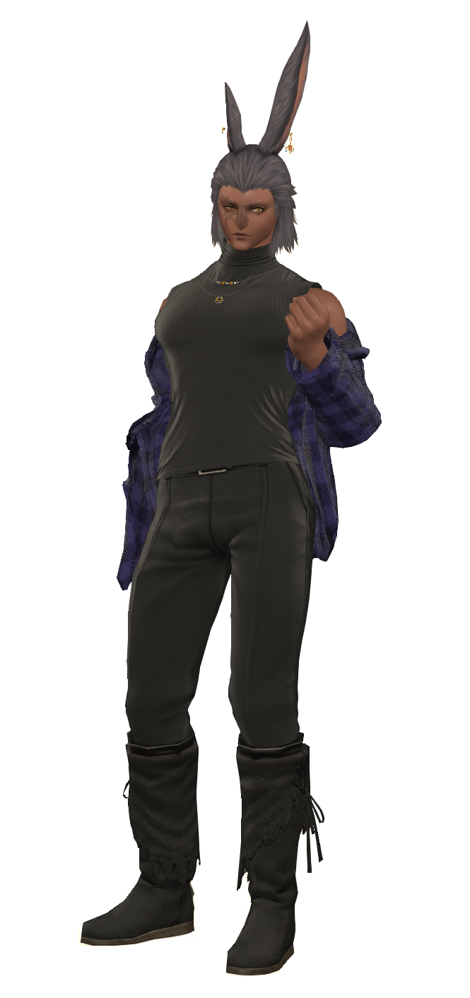 Looking for someone to get a job done quickly and effectively? Looking for someone to not get caught? Aoki is a shadow in the dark, with a past just as shaded. He now resides in Eorzea as a hired hand- not for leisure, only for coin. This mysterious blue Veena is often taking quiet jobs at night in the darkest parts of the cities. On the contrary, you might see him lurking around the forests of the Shroud... Possibly even picking some flowers...
